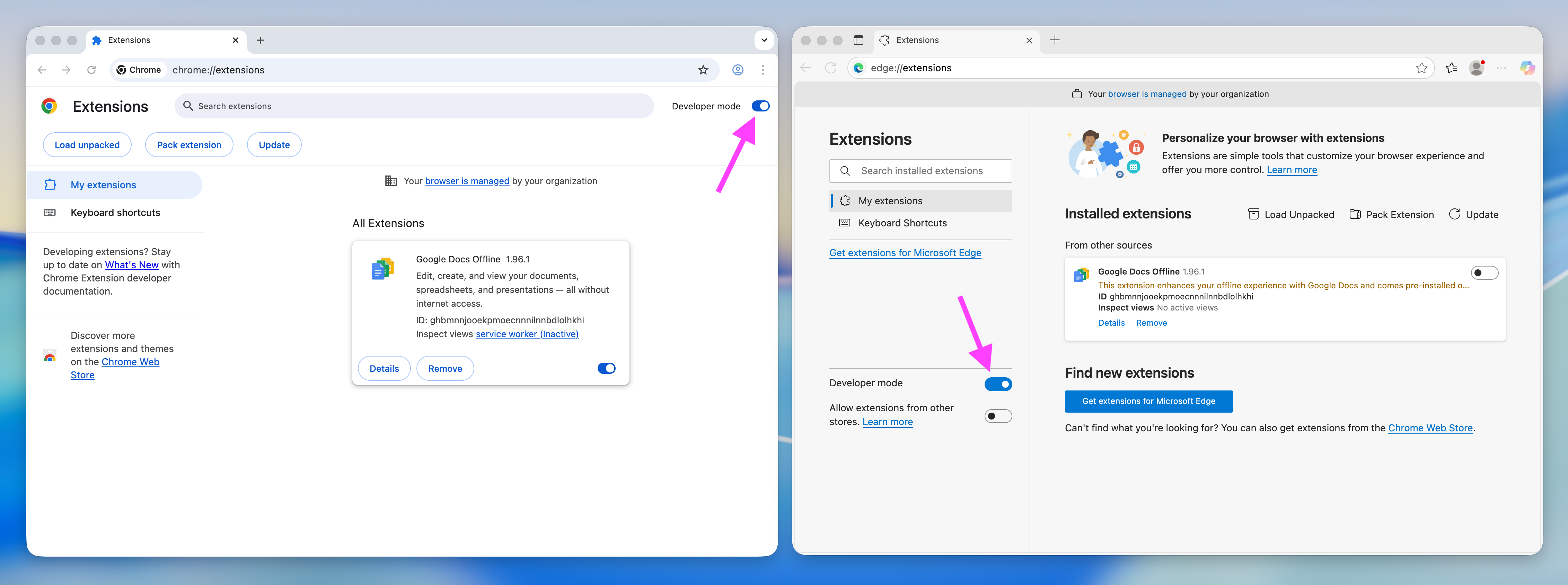 Next, enable the Developer Mode by clicking the given control of your browser:
