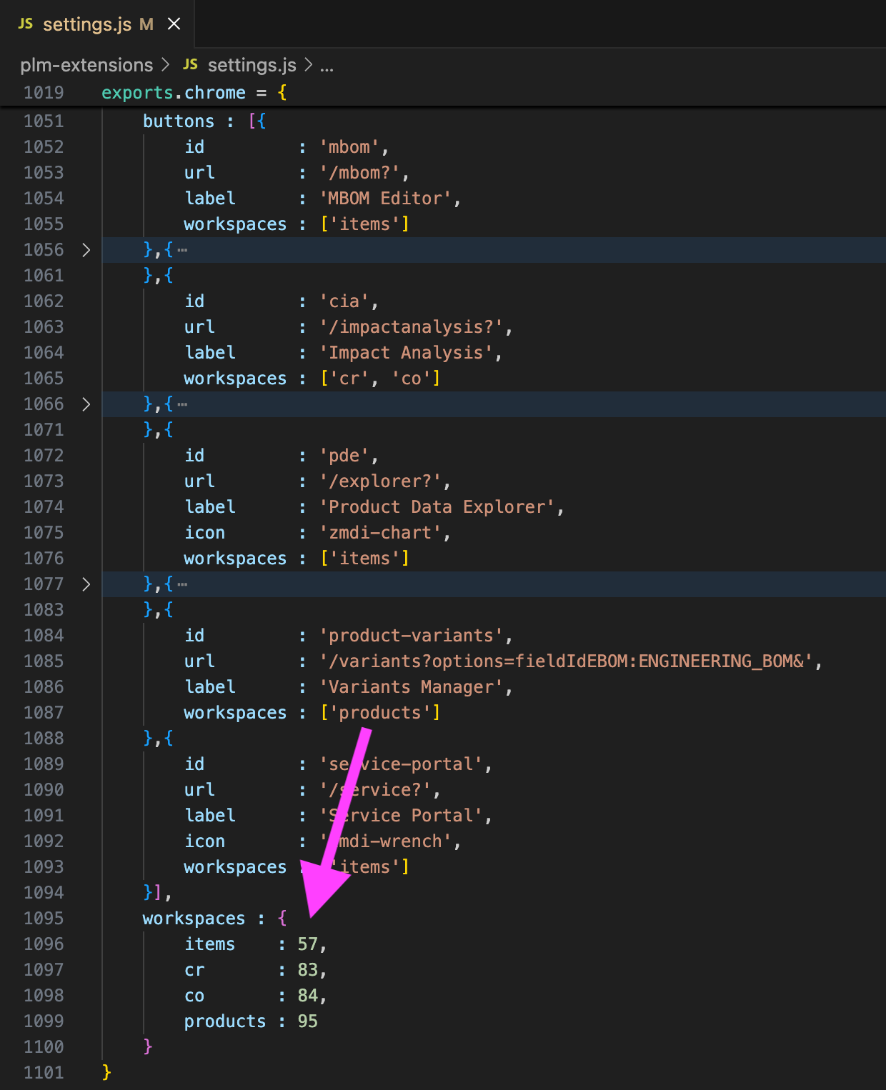 Each value listed in here will be mapped to the matching workspace ID using the property workspaces that follows the list of buttons.